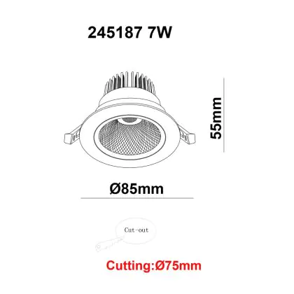 | Manufacturer Name | White label LED Downlight Round Tiltable 7W 560lm 60D 930 UGR19 CutoutØ70mm FrameØ85mm | |
