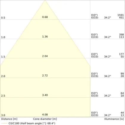 The colour code is a combination of colour rendering (CRI) and light colour (Kelvin). The first number indicates the colour rendering (1 = very poor colour rendering, 9 = maximum colour fastness). The second and third number contains the light colour. Example: the colour code 830 consists of good colour rendering (8) and warm white light (3000K).