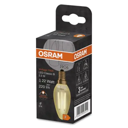 | Manufacturer Name | Vintage 1906 LED CL B FIL GOLD 22 non-dim 2,5W/824 E14 | |
